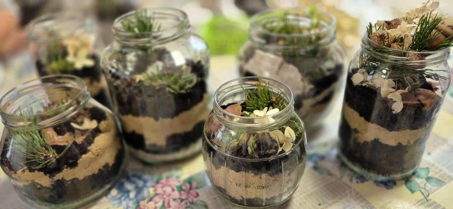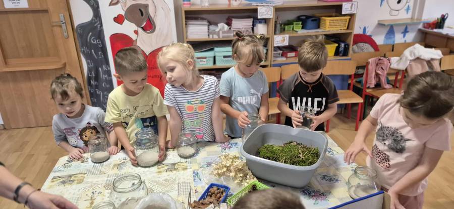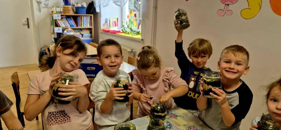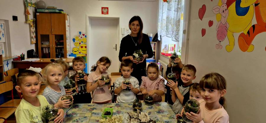 Dzieci z ogromnym zaangażowaniem tworzyły swoje Lasy w Słoiku pełne zieleni i wyobraźni