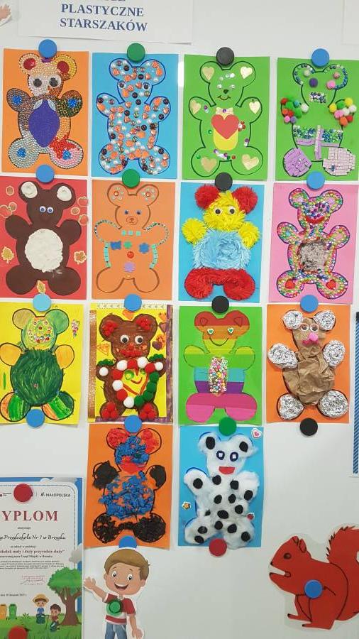 W naszym przedszkolu obchodziliśmy Dzień Pluszowego Misia. Dzieci przyniosły swoje ukochane maskotki, które towarzyszyły im przez cały dzień. Przedszkolaki brały udział w misiowych zabawach i wykonoły prace plastyczną.