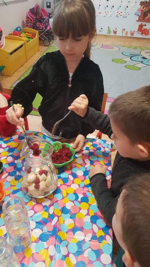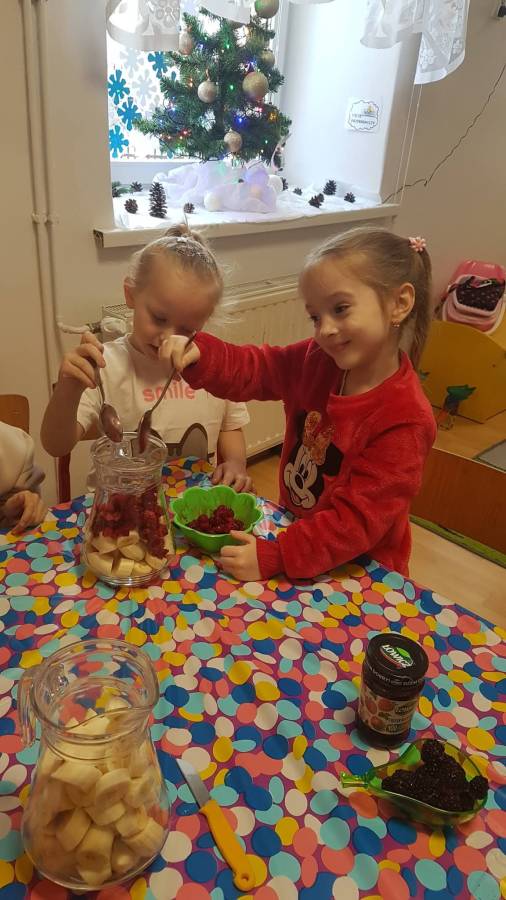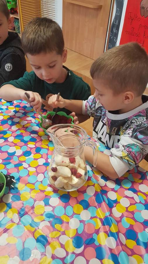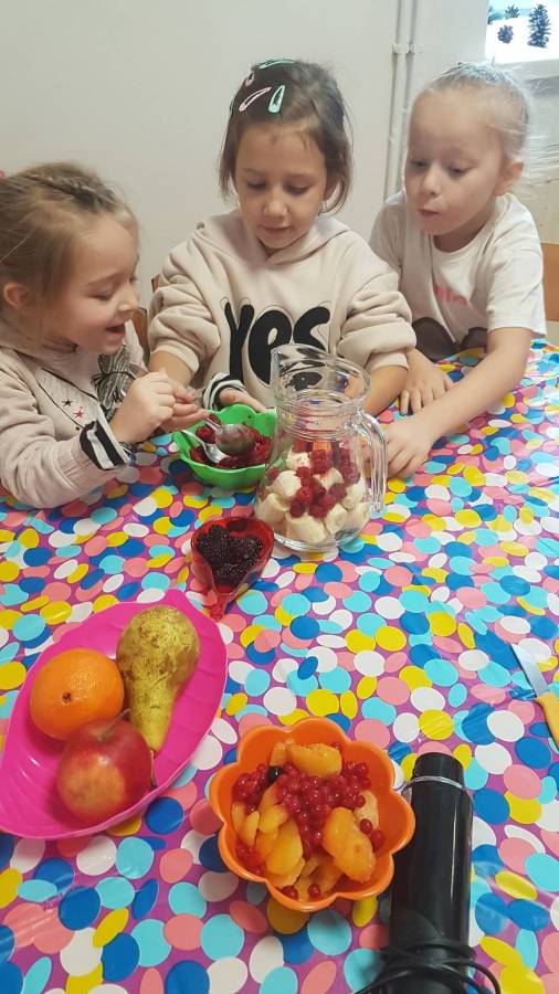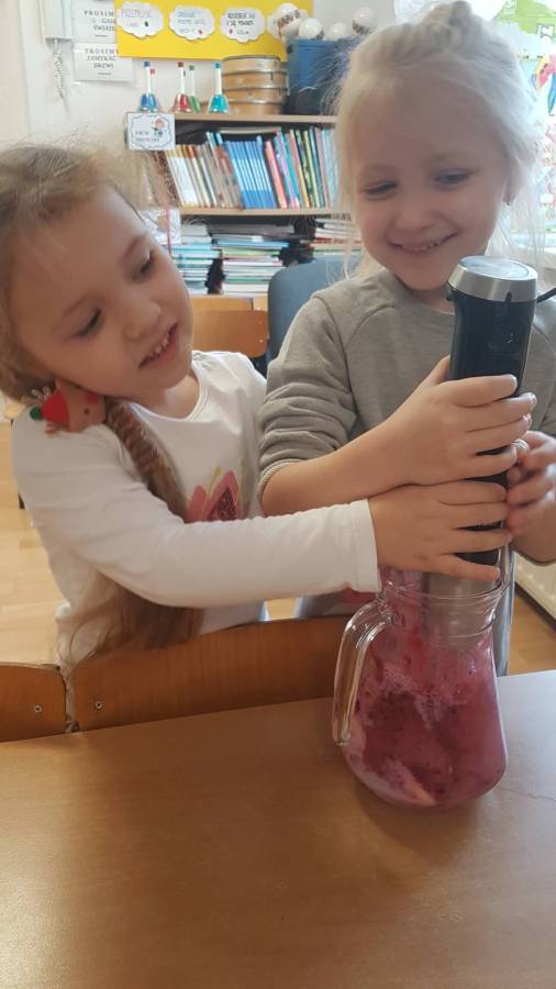 Przedszkolaki poznawały zasady zdrowego odżywiania. Podczas zajęć dowiedziały się, jak ważne są owoce w codziennej diecie, a zwieńczeniem zajęć było wspólne przygotowanie świeżego koktajlu owocowego. Zdrowa nauka przez zabawę!